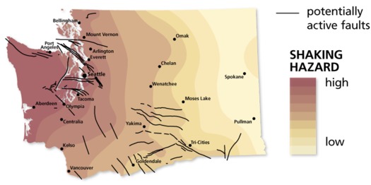 Enable JavaScript to see Google Maps. Washingtons fault lines tend to sweep east-west. Washington State Earthquake Hazard Map.